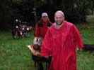 mit ausgewaschener Jacke läuft uns entgegen. Die graubärtige Hündin, er nennt