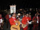 Gitarren, Trompeten und Zieharmonikas spazieren. Es beginnt zu regnen.